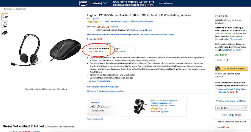 Які існують альтернативи, крім жорсткої конкуренції? Щоб уникнути конкуренції, ви можете пропонувати набори товарів, також звані комплектами. Наприклад, ігрова миша й ігрова клавіатура вдало доповнюють один одного. Ці два товари створюються на Amazon з загальним новим EAN. Поки інші продавці не створили такий же комплект, у вас немає конкурентів за Buy Box.